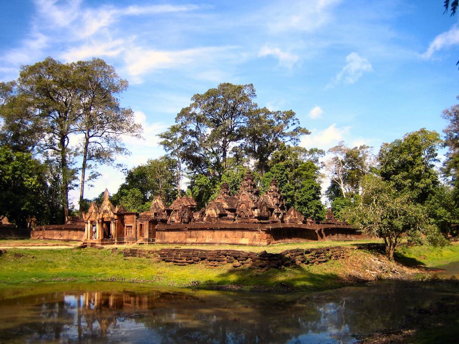 Avec ses bas-reliefs finement ciselés, le sanctuaire de Banteay Srei constitue une véritable prouesse artistique datant de l’ancienne civilisation khmère.